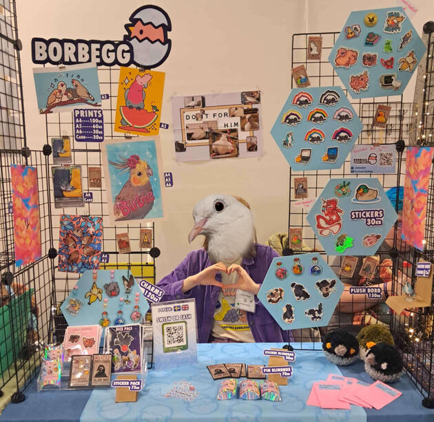 Game Artist by trade, bird enthusiast by life <3"Borbegg" started on Etsy a couple years ago as a passion project- to make more local bird trinkets!As the demand is huge I couldn't keep the Etsy up, so instead I'm doing my best to attend Artist Alleys to truly connect with my fellow bird lovers.